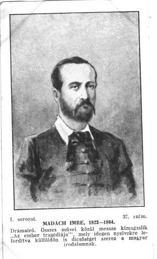 | Keywords: 37. Madách Imre.jpg hu A felvétel szkennelés 2012 június 7 én készült A képeslapsorozat korábbi tulajdonosa Bálint János Ócsa volt Az I sor 1 sz 1 sorozat 100 szám jelzetű képeslapok a 101 jelzetű füst albumot töltötték meg A képeslap sorozat képeit az 1920 as években adták ki Az ismeretlen szerző halála óta több mint 70 év telt el A képeslapok hátoldalán ex libris A sorozat képei 1 sz Gróf Széchenyi István 1791 1860 2 sz Deák Ferenc 1803 1876 2 sz 3 sz 4 sz 5 sz 6 sz 7 sz Felsőbükki Nagy Pál 1777 1857 8 sz Báró Eötvös József 1813 1871 9 sz Kossuth Lajos 1802 1894 10 sz Petőfi Sándor 1823 1849 11 sz Liszt Ferenc 1811 1886 12 sz Batthányy Lajos gróf 1806 1849 13 sz II Lajos 1506 1526 14 sz Munkácsy Mihály 1844 1900 15 sz Tisza Kálmán gróf 1830 1902 16 sz Mátyás király 1440 1490 17 sz Arany János 1817 1882 18 sz Tisza István gróf 1865 1918 19 sz Kölcsey Ferenc 1790 1838 20 sz Szinyei Merse Pál 1845 1920 21 sz Jókai Mór 1825 1904 22 sz Mikszáth Kálmán 1849 1910 23 sz Vörösmarty Mihály 1800 1855 24 sz Fadrusz János 1858 1903 25 sz Árpád a Honalapító 26 sz Szent István 975 -1038 27 sz Szent László 1040 - 1095 28 sz Könyves Kálmán 1070 1116 29 sz II Endre 1205 1235 30 sz IV Béla 1206 1270 31 sz Nagy Lajos 32 sz Hunyadi János 33 sz II Rákóczi Ferenc 34 sz Vak Bottyán 35 sz III Károly 36 sz II József 37 sz Madách Imre 38 sz Katona József 39 sz Csokonai Vitéz Mihály 40 sz Lotz Károly 41 sz Pöltenberg Ernő 42 sz Török Ignác 43 sz 44 sz 45 sz 46 sz 47 sz Aulich Lajos 48 sz Damjanich János 49 sz Dessewffy Arisztid 50 sz Lázár Vilmos 51 sz Kiss Ernő 52 sz Schweidel József 53 sz Vécsey Károly 54 sz Táncsics Mihály 55 sz Tompa Mihály 56 sz Rottenbiller Lipót 57 sz Szent Gellért 58 sz Szent Imre 59 sz Kapisztrán János 60 sz Kinizsi Pál 61 sz Tomori Pál 62 sz Zrinyi Miklós 63 sz Gábor Áron 64 sz Bem József 65 sz Bocskay István 66 sz Bethlen Gábor 67 sz József nádor 68 sz Kisfaludy Károly 69 sz Berzsenyi Dániel 70 sz Fáy András 71 sz Semmelweis Ignác 72 sz Egressy Gábor 73 sz Erkel Ferenc 74 sz Szilágyi Dezső 75 sz báró Bánffy Dezső 76 sz Ujházi Ede 77 sz Baross Gábor 78 sz id Wekerle Sándor 79 sz Justh Gyula 80 sz Prohászka Ottokár 81 sz Reményi Ede 82 sz Vámbéry Ármin 83 sz Rákosi Jenő 84 sz Eötvös Károly 85 sz Benczur Gyula 86 sz Blaha Lujza 87 sz Jászai Mari 88 sz Gárdonyi Géza 89 sz Ady Endre 90 sz Gyóni Géza 91 sz Báthori Zsigmond 92 sz Pázmány Péter 93 sz Kisfaludy Sándor 94 sz Goldmark Károly 95 sz Ferenc József 96 sz Erzsébet 97 sz Hermann Ottó 98 sz Lechner Ödön 99 sz Pósa Lajos 100 sz Móra Ferenc 101 jelzet füst album A felvétel és az egész sorozat képei megjelentek Creative Commons alatt a Metapolisz DVD sorozatban 2012-06-07 saját tulajdon author Custom license marker 2012 06 07 PD-old Uploaded with UploadWizard Imre Madách |