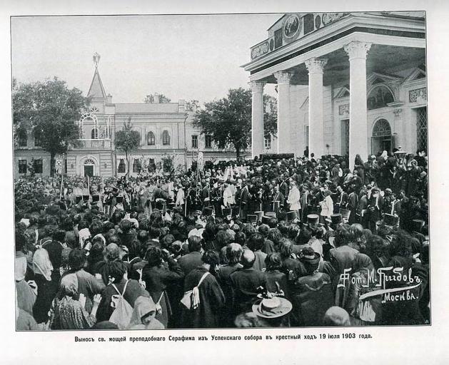 | View Original: | 39. Вынос мощей Преподобного Серафима из Успенского собора на крестный ход, 18 июля 1903 года.jpg (983x800) | |||