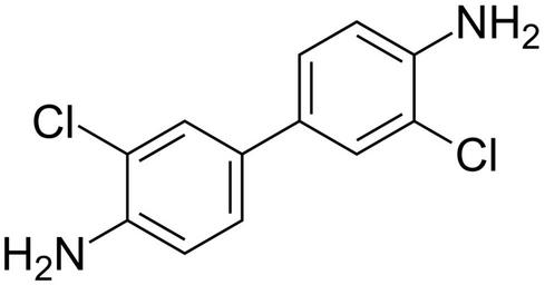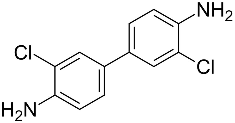 | Keywords: 3,3'-dichloro-(1,1'-biphenyl)-4,4'-diamine 200.svg  validSVG Structure of 3 3'-dichloro-1 1'-biphenyl-4 4'-diamine Own 2014-04-06 Emeldir <span class signature-talk >talk</span> Chemical structure verified https //upload wikimedia org/wikipedia/commons/e/ee/3 2C3 27-dichloro- 281 2C1 27-biphenyl 29-4 2C4 27-diamine_200 svg 1S/C12H10Cl2N2/c13-9-5-7 1-3-11 9 15 8-2-4-12 16 10 14 6-8/h1-6H 15-16H2 HUWXDEQWWKGHRV-UHFFFAOYSA-N 91-94-1 Synonyms <small>3 3'-Dichlorobenzidine 3 3'-Dichlorbenzidin CZECH 3 3'-Dichloro- 1 1'-biphenyl -4 4'-diamine 3 3'-Dichloro-4 4'-diaminodiphenyl 3 3'-Dichloro-4 4'-biphenyldiamine 3 3'-dichloro-4 4'-biphenyldiamine 3 3'-Dichloro-4 4'-diaminobiphenyl 3 3'-dichloro-4 4'-diaminobiphenyl 3 3'-Dichlorobenzidina spanish 3 3'-Dichlorobenzidine 3 3'-Dichlorobiphenyl-4 4'-diamine 3 3'-dichlorobiphenyl-4 4'-diamine 3 3-Dichlorobenzidine 4 4'-Diamino-3 3'-dichlorobiphenyl 4 4'-diamino-3 3'-dichlorobiphenyl 4 4'-Diamino-3 3'-dichlorobiphenyl 1 1'-Biphenyl-4 4'-diamine 3 3'-dichloro- 9CI Benzidine 3 3'-dichloro- 8CI C I 23060 Curithane C 126 dichlorobenzidine Dichlorobenzidine base Dichlorobenzidine 3 3'- o o'-dichlorobenzidine o o'-Dichlorobenzidine p-3 3'-Dichlorobenzidine WLN ZR BG DR DZ CG</small> PD-chem Biphenyls  |