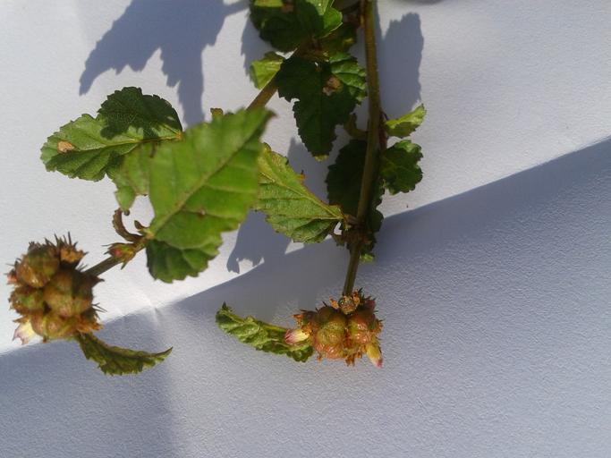 | Keywords: பிண்ணாக்குக் கீரை3.jpg en Botanical name - Melochia corchorifolia Common name Chocolate weed According to researches Leaves have Triterpenes Flavonol Glycosides etc Leaves are consumed as a potherb; Dried leaves are source of Protein; Leaves are used to treat Ulcers Abdominal swelling and Headache and Chest pain; Roots and leaves are useful for Snakebites and Wounds; This plant is a source of fibre for making bags ; Stems are used for tying bundles In picture - Flowers and unripe fruits of Melochia corchorifolia ta பிண்ணாக்குக் க ரை இலை க ரையாகச் சமைத்து உண்ணத் தக்கது;வயிற்றுப் புண்ணை இக் க ரை ஆற்றும்; விரை வ க்கத்திற்கு இக் க ரை மருந்து;நெஞ்சு வலிக்கும் இக் க ரையை உண்ணலாம்; பாம்புகடி மருந்தாக வேரும் இலையும் பயன்படுகிறது; பிண்ணாக்குக் க ரையில் புரதச் சத்து உள்ளது; தண்டுப் பகுதிகளைக் கட்டும் கயிறாகப் பயன்படுத்துவர் ;நோய் ந க்கும் சில இரசாயனப் பொருள்களை இத் தாவரம் கொண்டுள்ளது படம் - நுனியில் வெளிர் சிவப்பும் அடியில் வெள்ளையும் கொண்ட மூன்று பூக்களுடன் பிண்ணாக்குக் க ரை own Dr S Soundarapandian 2014-03-30 Own research Shot in Chennai Tamilnadu India 4 5 kms off sea-shore ;Latitude-13°02'20 N ; Longitude- 80°13'43 E ; Elevation from sea level - 6 7 m Melochia corchorifolia Unripe fruits Cc-zero |