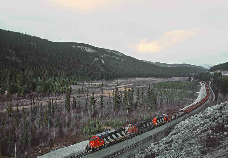 3 of the Canadian National in Alberta (29390903253).jpg en These are Roger Puta's from May of 1985 <br> CN 5187 about at Geike west of Jasper on the Albreda Sub 2016-09-29 22 03 45 https //www flickr com/people/129679309 N05 railfan 44 https //www flickr com/photos/129679309 N05/29390903253/ User Fæ/Flickr API Puta's CN and Roads Absorbed into the CN Western Railroads Mel Finzer RogerPuta Photographs by Roger Puta Photos uploaded from Flickr by Fæ using a script 1985 in Alberta 1985 in rail transport in Canada |