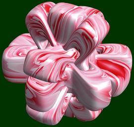 | Keywords: mathematica 3d cg parametricplot3d texture torus 輪環 りんかん ドーナツ どーなつ 六芒星 ろくぼうせい 六光星 ろくこうせい 六稜星 ろくりょうせい プログラム コード code program algorithm コード アルゴリズム hexagram geometric sculpture geometricsculpture shape geometry sculpture mapping テクスチャ マッピング 模様 もよう design pattern デザイン パターン graphic グラフィック グラフィクス structure 意匠 構造 symmetry 対称性 たいしょうせい シンメトリー 対称 たいしょう algorithm a = 2;(* center hole size of a torus *) b = 6;(* hexa-torus *) c = 0;(* distance from the center of rotation *) d = 3;(* number of torus *) SetOptions[ParametricPlot3D, PlotRange -> Full, Mesh -> None, Boxed -> False, Axes -> None, PlotPoints -> 400, ImageSize -> 3000, Background -> Darker[Green, 0.8], PlotStyle -> Directive[Specularity[White, 50], Texture[Import["D:/tmp/86.jpg"]]], TextureCoordinateFunction -> ({#4 + #5, #5 } &), Lighting -> "Neutral"]; f[v_] := Sin[2 Sin[Sin[Sin[v]]]]; x = (a - Cos[t] - f[b s]) Cos[s + Pi/(2 b)] + c; y = f[t] + c; z = (a - Cos[t] - f[b s]) Sin[s + Pi/(2 b)] + c; rot = Table[{x, y, z}.RotationMatrix[2 i Pi/d, {1, 1, 1}], {i, d}]; ParametricPlot3D[rot, {t, 0, 2 Pi}, {s, 0, 2 Pi}] (*--- The Texture *) a = 2;(* center hole size of a torus *) b = 6;(* hexa-torus *) c = 0;(* distance from the center of rotation *) d = 3;(* number of torus *) SetOptions[ParametricPlot3D, PlotRange -> Full, Mesh -> None, Boxed -> False, Axes -> None, PlotPoints -> 400, ImageSize -> 3000, Background -> Darker[Green, 0.8], PlotStyle -> Directive[Specularity[White, 50], Texture[Import["D:/tmp/86.jpg"]]], TextureCoordinateFunction -> ({#4 + #5, #5 } &), Lighting -> "Neutral"]; f[v_] := Sin[2 Sin[Sin[Sin[v]]]]; x = (a - Cos[t] - f[b s]) Cos[s + Pi/(2 b)] + c; y = f[t] + c; z = (a - Cos[t] - f[b s]) Sin[s + Pi/(2 b)] + c; rot = Table[{x, y, z}.RotationMatrix[2 i Pi/d, {1, 1, 1}], {i, d}]; ParametricPlot3D[rot, {t, 0, 2 Pi}, {s, 0, 2 Pi}] (*--- The Texture *) |