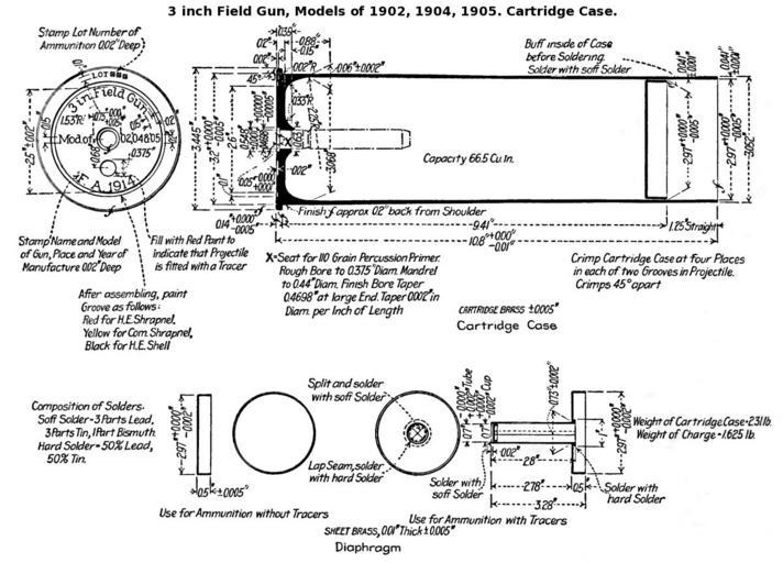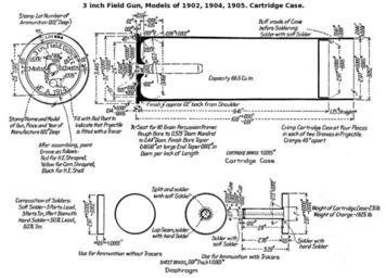 Keywords: 3inchGunUS190219041905CartridgeCaseDiagram.jpg Diagrams of Cartridge Case for US 3 inch Field Gun Model of 1902-1904-1905 Figure 1 Page 72 in United States artillery ammunition; 3 to 6 in shrapnel shells 3 to 6 in high explosive shells and their cartridge cases 1917 <br>http //www archive org/details/unitedstatesarti00vialrich 1917 Ethan Viall Published by McGraw-Hill book company inc ; New York PD-USGov PD-US US Copyright expired pre-1923 3 inch Gun Model 1902-1904-1905 Artillery drawings Artillery ammunition before World War I |