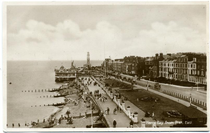 Keywords: 3rd Herne Bay Pier 1932-1939 014.jpg Postcard dated 1932-1939 showing a view of Herne Bay Kent England looking east from the third Herne Bay Pier Photo probably taken from the promenade deck halfway up the Grand Pier Pavilion or possibly from the roof of the entrance building This shows a special aspect of the pier which was to give an unusual view of the town from the sea for those who had no access to ships Scan of postcard 1932 1939 anon out of copyright PD-old-70 Herne Bay Pier Postcards of seascapes of the United Kingdom Herne Bay Bandstand |