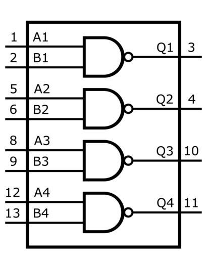 Keywords: 4011 Functional Diagram.svg en Function diagram of the 4011 Quad 2-Input NAND gate CMOS IC own Inductiveload 2008-12-22 IC functional diagrams 4000 Series