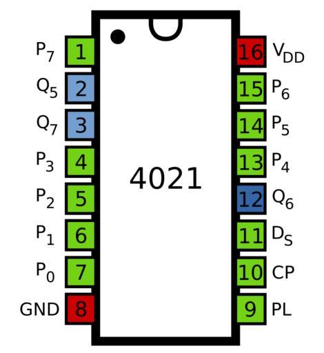 Keywords: 4021 Pinout.svg en Pinout diagram of the 4021 8-Bit Static Shift Register with Asynchronous Parallel Load IC own Inductiveload 2009-09-21 IC pinout diagrams