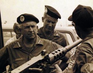 Keywords: 428-GX-USN 1142474: Binh Thuy, Republic of Vietnam. Admiral Thomas H. Moorer, Chief of Naval Operations, listens as Rear Admiral William R. Flanagan, Deputy Commander, U.S. Naval Forces, Vietnam, explains the operations of a .50 caliber machine gun aboard UH-1B Iroquois helicopter, Captain Joseph R. Faulk, Commander River Patrol Force and Commander River Patrol Force and Commander River Patrol Flotilla Five looks on. Photographed by PH2 S.P. Langley, August 1969. U.S. Navy photograph, now in the collections of the National Archives. (2016/04/12). 428-GX-USN 1142474: Binh Thuy, Republic of Vietnam. Admiral Thomas H. Moorer, Chief of Naval Operations, listens as Rear Admiral William R. Flanagan, Deputy Commander, U.S. Naval Forces, Vietnam, explains the operations of a .50 caliber machine gun aboard UH-1B Iroquois helicopter, Captain Joseph R. Faulk, Commander River Patrol Force and Commander River Patrol Force and Commander River Patrol Flotilla Five looks on. Photographed by PH2 S.P. Langley, August 1969. U.S. Navy photograph, now in the collections of the National Archives. (2016/04/12). |
