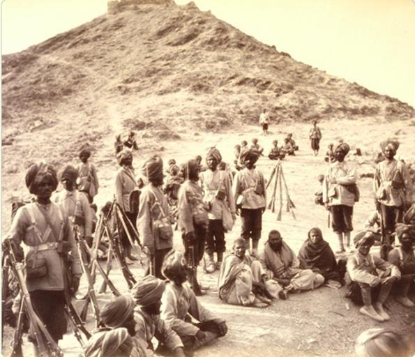 Keywords: 45th Sikh Regiment escorting prisoners - 2nd afghan war.jpg en wikipedia 2012 July 4 Photo of 45th Rattray's Sikhs with prisoners from the second Second Anglo-Afghan War<br />From Source The three Afghan prisoners captured in the advance through the Khurd Khyber are sitting in the centre of the photograph surrounded by Sikh guards The 45th Sikh Regiment was raised in 1856 by Captain Thomas Rattray and was popularly known as Rattray ™s Sikhs It had earlier earned glory with its courage and loyalty to the British at the relief of Lucknow during the Indian Uprising of 1857 The Regiment served in the Fourth Infantry Brigade part of the Peshawar Valley Field Force during the Second Afghan War The prisoners were lucky to have survived because in the harsh conditions and terrain of the Afghan Wars no quarter was given and prisoners taken on both sides http //lakhvir files wordpress com/2006/07/afghan-war jpg w 477 1878 John Burke This image is in the public domain and may be used free of charge without permissions or fees <br /> PD-old-100 Original upload log en wikipedia 45th+Sikh+Regiment+escorting+prisoners+-+2nd+afghan+war jpg 2010-07-12 22 15 Profitoftruth85 472×406× 130913 bytes <nowiki> Photo of 45th Rattray's Sikhs with prisoners from the second Second Anglo-Afghan War http //lakhvir files wordpress com/2006/07/afghan-war jpg w 477 1878 John Burke This image is in the pu</nowiki> __NOTOC__ Second Anglo-Afghan War Military units and formations of India John Burke |