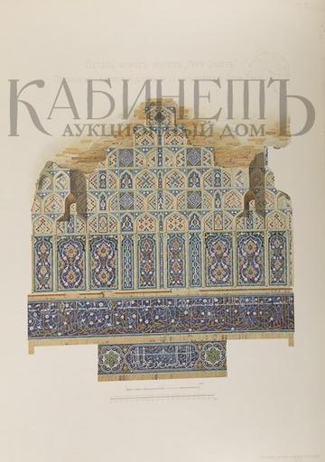 Keywords: мечеть самарканд веселовский н.и. веселовскийни аукцион гур-эмир гурэмир тамерлан 1905 библиотека на продажу библиотеканапродажу text writing indoor Архив аукциона №16(58) Лот 239 [Веселовский Н.И.] Мечети Самарканда. Выпуск I (единственный). Гур-Эмир. Издание Императорской Археологической Комиссии. Посвящается Ее Императорскому Величеству Государыне Александре Федоровне. СПб., Экспедиция Заготовления Государственных бумаг, 1905. [Les Mosquées de Samarcande. Fascicule I. Gour-Emir. Publiè par la Commission imperial Archeologique. St-Pètersbourg, Expèdition pour la confection des papiers d`etat, 1905.] Формат издания: 75,3 х 54 см. [4], IX с., 18 л. ил. (на одном листе и разворотах). Первое издание. Заглавие на русском, французском и арабском языках. Текст на русском и французском языках. Экземпляр в издательской бумажной обложке, незначительные надрывы и загибы на верхней обложке, реставрация с оборотной стороны скотчем, корешок утрачен. Некоторые иллюстрации на развороте надорваны. В книге «Мечети Самарканда» в цветных таблицах показаны орнаменты гробницы Тимура (Тамерлана) в Самарканде. Гур-Эмир – мавзолей азиатского завоевателя Тамерлана (Тимура) в Самарканде, воздвигнут в юго-западной части города в 1404 г. Веселовский Николай Иванович (1848-1918) – археолог, востоковед-арабист. Его большая исследовательская работа по Средней Азии была завершена в 1905 году изданием первого выпуска атласа архитектурных материалов «Мечети Самарканда». Предварительная оценка: 25 000 – 32 000 р. Цена продажи: 55 000 р. www.kabinet-auktion.com/auction/books16/239/ Архив аукциона №16(58) Лот 239 [Веселовский Н.И.] Мечети Самарканда. Выпуск I (единственный). Гур-Эмир. Издание Императорской Археологической Комиссии. Посвящается Ее Императорскому Величеству Государыне Александре Федоровне. СПб., Экспедиция Заготовления Государственных бумаг, 1905. [Les Mosquées de Samarcande. Fascicule I. Gour-Emir. Publiè par la Commission imperial Archeologique. St-Pètersbourg, Expèdition pour la confection des papiers d`etat, 1905.] Формат издания: 75,3 х 54 см. [4], IX с., 18 л. ил. (на одном листе и разворотах). Первое издание. Заглавие на русском, французском и арабском языках. Текст на русском и французском языках. Экземпляр в издательской бумажной обложке, незначительные надрывы и загибы на верхней обложке, реставрация с оборотной стороны скотчем, корешок утрачен. Некоторые иллюстрации на развороте надорваны. В книге «Мечети Самарканда» в цветных таблицах показаны орнаменты гробницы Тимура (Тамерлана) в Самарканде. Гур-Эмир – мавзолей азиатского завоевателя Тамерлана (Тимура) в Самарканде, воздвигнут в юго-западной части города в 1404 г. Веселовский Николай Иванович (1848-1918) – археолог, востоковед-арабист. Его большая исследовательская работа по Средней Азии была завершена в 1905 году изданием первого выпуска атласа архитектурных материалов «Мечети Самарканда». Предварительная оценка: 25 000 – 32 000 р. Цена продажи: 55 000 р. www.kabinet-auktion.com/auction/books16/239/