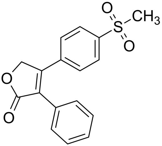 | Keywords: 4-(4-(methylsulfonyl)phenyl)-3-phenylfuran-2(5H)-one 200.svg validSVG Structure of 4-4- methylsulfonyl phenyl-3-phenylfuran-2 5H -one Struktur von 4-4- Methylsulfonyl phenyl-3-phenylfuran-2 5H -on Own 2014-03-14 Emeldir <span class signature-talk >talk</span> Chemical structure verified https //upload wikimedia org/wikipedia/commons/6/6a/4- 284- 28methylsulfonyl 29phenyl 29-3-phenylfuran-2 285H 29-one_200 svg 1S/C17H14O4S/c1-22 19 20 14-9-7-12 8-10-14 15-11-21-17 18 16 15 13-5-3-2-4-6-13/h2-10H 11H2 1H3 RZJQGNCSTQAWON-UHFFFAOYSA-N 162011-90-7 PD-chem COX-2 inhibitors Gamma-lactones furones Benzosulfones |
