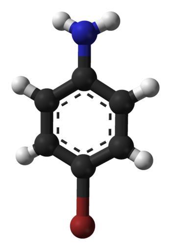 | Keywords: 4-bromoaniline-from-xtal-2003-3D-balls.png Ball-and-stick model of the 4-bromoaniline molecule C<sub>6</sub>H<sub>6</sub>BrN from the crystal structure Colour code Carbon C black Hydrogen H white Nitrogen N blue Bromine Br brown Crystal structure by X-ray diffraction from http //dx doi org/10 1039/b304785g CrystEngComm 2003 5 248-252 Model constructed in http //www crystalmaker com/ CrystalMaker 8 1 Image generated in http //accelrys com/products/discovery-studio/visualization/discovery-studio-visualizer html Accelrys DS Visualizer Own 2009-06-27 Ben Mills Benjah-bmm27 Images by Ben Mills Ball-and-stick models 4-bromoaniline |