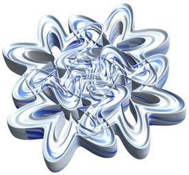 | Keywords: mathematica 3d cg parametricplot3d texture torus square wave squarewave 輪環 りんかん ドーナツ どーなつ 六芒星 ろくぼうせい 六光星 ろくこうせい 六稜星 ろくりょうせい program プログラム code コード algorithm コード アルゴリズム hexagram geometric sculpture geometricsculpture shape geometry sculpture mapping テクスチャ マッピング 模様 もよう design pattern デザイン パターン graphic グラフィック グラフィクス structure 意匠 構造 symmetry 対称性 たいしょうせい シンメトリー 対称 たいしょう algorithm white background indoor SetOptions[ParametricPlot3D, PlotRange -> Full, Mesh -> None, Boxed -> False, Axes -> None, PlotPoints -> 400, ImageSize -> 3000, PlotStyle -> Directive[Specularity[White, 30], Texture[Import["D:/tmp/863.jpg"]]], TextureCoordinateFunction -> ({#4 + #5, #5/Pi} &), Lighting -> "Neutral"]; a = 2.5; (* center hole size of torus *) b = 6; (* hexa-torus *) c = 2; (* distance from the center of rotation *) d = 4; (* number of torus *) x = (a - Cos[t] - Sin[b s]) Cos[s + Pi/10] + c; y = Sum[Sin[(2 k - 1) t]/(2 k - 1), {k, 3}] + c; z = (a - Cos[t] - Sin[b s]) Sin[s + Pi/10] + c; rot = Table[{x, y, z}.RotationMatrix[2 i Pi/d, {1, 1, 0}], {i, d}]; ParametricPlot3D[rot, {t, 0, 2 Pi}, {s, 0, 2 Pi}] (*--- The Texture is another color version of this: www.flickr.com/photos/tanaka_juuyoh/5412528282 The y is a 3-partial sum of the Fourier series for Square wave. yは矩形波のフーリエ展開の最初の3項 *) SetOptions[ParametricPlot3D, PlotRange -> Full, Mesh -> None, Boxed -> False, Axes -> None, PlotPoints -> 400, ImageSize -> 3000, PlotStyle -> Directive[Specularity[White, 30], Texture[Import["D:/tmp/863.jpg"]]], TextureCoordinateFunction -> ({#4 + #5, #5/Pi} &), Lighting -> "Neutral"]; a = 2.5; (* center hole size of torus *) b = 6; (* hexa-torus *) c = 2; (* distance from the center of rotation *) d = 4; (* number of torus *) x = (a - Cos[t] - Sin[b s]) Cos[s + Pi/10] + c; y = Sum[Sin[(2 k - 1) t]/(2 k - 1), {k, 3}] + c; z = (a - Cos[t] - Sin[b s]) Sin[s + Pi/10] + c; rot = Table[{x, y, z}.RotationMatrix[2 i Pi/d, {1, 1, 0}], {i, d}]; ParametricPlot3D[rot, {t, 0, 2 Pi}, {s, 0, 2 Pi}] (*--- The Texture is another color version of this: www.flickr.com/photos/tanaka_juuyoh/5412528282 The y is a 3-partial sum of the Fourier series for Square wave. yは矩形波のフーリエ展開の最初の3項 *) |