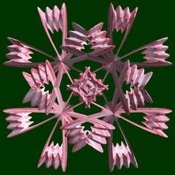 | Keywords: mathematica 3d cg parametricplot3d texture torus 輪環 りんかん ドーナツ どーなつ 五芒星 ごぼうせい 五光星 ごこうせい 五稜星 ごりょうせい code program algorithm コード プログラム アルゴリズム pentagram geometric sculpture geometricsculpture shape geometry sculpture mapping テクスチャ マッピング 模様 もよう abstract 抽象 ちゅうしょう アブストラクト design pattern デザイン パターン graphic グラフィック グラフィクス structure 意匠 構造 symmetry 対称性 たいしょうせい シンメトリー 対称 たいしょう algorithm コード outdoor plant blossom flower cluster flower a = 1; (* center hole size of a torus *) b = 5; (* penta-torus *) c = 1; (* distance from the center of rotation *) d = 4; (* number of torus *) h = 1; (* height of a torus *) SetOptions[ParametricPlot3D, PlotRange -> Full, Mesh -> None, Boxed -> False, Axes -> False, PlotPoints -> 300, ImageSize -> 2600, Background -> Darker[Green, 0.8], PlotStyle -> Directive[Specularity[White, 30], Texture[Import["D:/tmp/86.jpg"]]], TextureCoordinateFunction -> ({#4, #5 } &), Lighting -> "Neutral"]; f[v_] := Cos[2 Cos[Cos[Cos[v]]]]; g[v_] := Sum[Sin[(2 k - 1) v]/(2 k - 1), {k, 4}]; x = (a - f[t] - g[b s]) Cos[s + 3 Pi/(4 b)] + c; y = (a - f[t] - g[b s]) Sin[s + 3 Pi/(4 b)] + c; z = (a - Sin[t] - h g[b s]); rot = Table[{x, y, z}.RotationMatrix[2 i Pi/d, {0, 0, 1}], {i, d}]; ParametricPlot3D[rot, {t, 0, 2 Pi}, {s, 0, 2 Pi}] (*--- The Texture *) a = 1; (* center hole size of a torus *) b = 5; (* penta-torus *) c = 1; (* distance from the center of rotation *) d = 4; (* number of torus *) h = 1; (* height of a torus *) SetOptions[ParametricPlot3D, PlotRange -> Full, Mesh -> None, Boxed -> False, Axes -> False, PlotPoints -> 300, ImageSize -> 2600, Background -> Darker[Green, 0.8], PlotStyle -> Directive[Specularity[White, 30], Texture[Import["D:/tmp/86.jpg"]]], TextureCoordinateFunction -> ({#4, #5 } &), Lighting -> "Neutral"]; f[v_] := Cos[2 Cos[Cos[Cos[v]]]]; g[v_] := Sum[Sin[(2 k - 1) v]/(2 k - 1), {k, 4}]; x = (a - f[t] - g[b s]) Cos[s + 3 Pi/(4 b)] + c; y = (a - f[t] - g[b s]) Sin[s + 3 Pi/(4 b)] + c; z = (a - Sin[t] - h g[b s]); rot = Table[{x, y, z}.RotationMatrix[2 i Pi/d, {0, 0, 1}], {i, d}]; ParametricPlot3D[rot, {t, 0, 2 Pi}, {s, 0, 2 Pi}] (*--- The Texture *) |