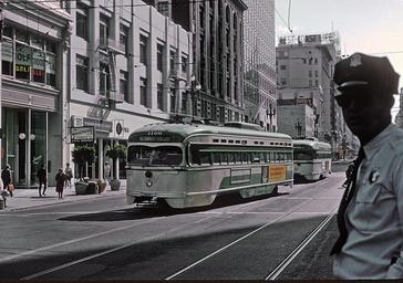 | Keywords: san francisco sanfrancisco 1166, a L TARAVAL EAST BAY TERMINAL car turning onto First St. from Market St. in San Francisco, CA on August 25, 1967. 1166, a L TARAVAL EAST BAY TERMINAL car turning onto First St. from Market St. in San Francisco, CA on August 25, 1967. |