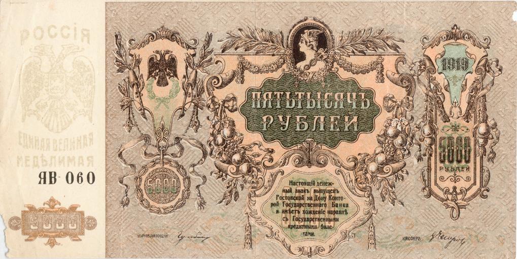 | Keywords: Донские деньги - 5000 рублей. Реверс. 1919. Ростов.jpg Донские деньги 5000 ублей аве с 1919 Ростов-на-Дону еловой знак на аллонже РОССIЯ ЕДИ АЯ ВЕЛИКАЯ ЕДѢЛИ АЯ Изоб ажён Двуглавый о ёл Всевеликое Войско Донское 1919 год выпуска Ростов-на-Дону 1919 год свой скан бумажных денег оциф овка 2007 года Разместил Викто Визу 1919 currency Original upload log ru wikipedia ftcg page ru wikipedia D0 94 D0 BE D0 BD D1 81 D0 BA D0 B8 D0 B5_ D0 B4 D0 B5 D0 BD D1 8C D0 B3 D0 B8_-_5000_ D1 80 D1 83 D0 B1 D0 BB D0 B5 D0 B9 _ D0 A0 D0 B5 D0 B2 D0 B5 D1 80 D1 81 _1919 _ D0 A0 D0 BE D1 81 D1 82 D0 BE D0 B2 jpg wikitable - 09 15 4 August 2007 8 813 × 4 427 5 185 424 bytes Vizu w ru <nowiki></nowiki> Banknotes of Don 1919 Banknotes with a face value of 5000 |