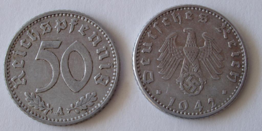 Keywords: 50 Reichspfennig 1942.jpg Deutsches Reich 50 Reichspfennig 1942 d 22 5 mm 1 333 gramm al NobbiP 2007-09 Deutsches Reich <gallery> image 1 Rentenpfennig 1923 jpg 1 Rentenpfennig 1923 image 2 Reichspfennig 1924 jpg 2 Reichspfennig 1924 image 5 Reichspfennig 1938 jpg 5 Reichspfennig 1938 image 10 Pfennig 1900 jpg 10 Pfennig 1900 image 10 Pfennig 191x zinkpest jpg 10 Pfennig 191x with zinkpest / zinc pest image 10 Pfennig 1921 jpg 10 Pfennig 1921 image 10 Reichspfennig 1937 jpg 10 Reichspfennig 1937 image 50 Pfennig 1920 jpg 50 Pfennig 1920 </gallery> Nazi symbol Reichsmark coins of the Third Reich 0050 1942 1942 coins Nazi Swastikas Eagles on coins |