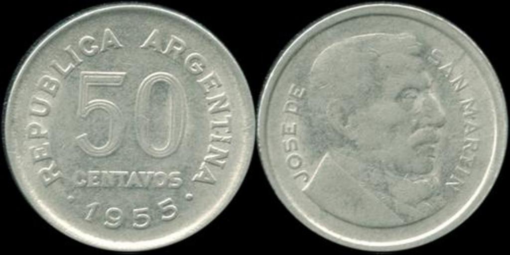 Keywords: 50Centavoos55.PNG es Moneda de cincuenta centavos de 1955 Argentine 50 centavos 1/100 of a peso Argentine coin Argentine Central Bank photograph by Turkmenistan 1955 Coin PD-AR-Anonymous <br/>Photograph Coins of Argentina
