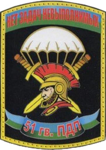| Keywords: 51 PDP VSRF 1.png  ru  а укавный знак 51-й ПДП Тула неизвестно http //nashivki ucoz ru/photo/vdv_vs_rf/106_vdd/187  инобо оны России other versions Custom license marker 2016 07 08 PD-RU-exempt insignia Airborne Troops sleeve badges of Russian Federation 51 PDP VSRF |