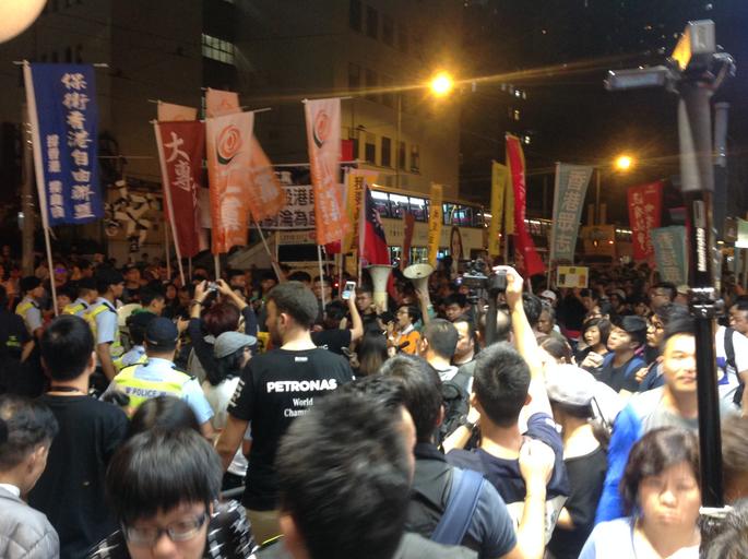 Keywords: 香港各界發起反人大釋法大遊行和集會 52.jpg zh-tw 中 人大常委 11 7日將就香港 年新政兩位議員宣誓風波,對基 法 宣誓 例宣布釋法內容之際,香港民間人權陣線星 天發起各界 反對釋法大遊行 和集 ,抗議人大 香港高等法院審理 宣誓風波司法覆核案 間,主動對基 法第104 釋法,破壞香港獨立的司法制度 香港民陣發起反釋法大遊行後,數以千計的示威 繼續遊行到西環的中聯辦抗議人大釋法 8點半左右,示威 手舉雨傘再次沖擊警方防線,警方則狂噴辣椒噴劑還擊 警方調派大批警員增援,並將配備防暴頭盔的警員派至 線與示威 對峙 警方不斷呼籲示威 持冷 ,不要 擊警方防線,要求示威 盡快離開 9點前, 中聯辦外與警察對峙的示威 突然撤離,輕 西 警署外的徳輔道西和西邊街道口,現場雙向交 中斷, 場自2014年雨傘運動後的佔領行動 醞 中,現場至少 幾千之 十多分鐘後,警方開始廣 播,要求佔路人士離開 示威 9點過後佔據了中聯辦外 段德輔道,並 中聯辦後 外與警方防線展開推撞,警方用辣椒噴 還擊將示威 防線推後 示威 不斷呼喊反對釋法 警方 中聯辦西邊的 光街路口佈署第二道防線,並 警員從路旁的西 警署裡向警察傳遞防暴盾牌 步部署防線 目前還不清楚警方何時清場 2016-11-06 18 33 46 http //www voachinese com/a/hk-protest-20161106/3583208 html 海彥 other versions Custom license marker 2016 11 06 PD-USGov-VOA Occupy Sai Wan |