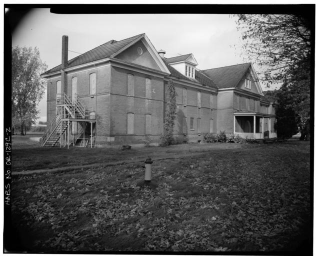 Keywords: 5495 Chugath Street McBride Hall - view from southeast - Chemawa Indian School - Salem Oregon.jpg Chemawa Indian School Salem Marion County Oregon Built 1902; demolished 1978 Former National Register of Historic Places listing 1977 photograph from the HABS ”Historic American Buildings Survey images of Oregon ;LOC card text 5495 Chugach St N E Red brick on concrete foundations with wooden and stone trim rectangular with center and end projections 114' sixteen-bay front x 35' two-and-a-half stories hip and gable roofs with pedimented gable ends and gable dormers denticulated cornice three-bay hip-roof entrance porch with wooden railing double doors with fanlight segmental arched window heads with stone sills brick belt course at sill level of each floor; dormitory main stair with classical details Built 1902; alterations to interior n d ; demolished 1978 4 ext photos 1977 6 int photos 1977 Also see Chemawa Indian School OR-129 Card prepared 1979 CALL NUMBER HABS ORE 24-SAL 1C- NOTE Survey number HABS OR-129-C DIGID http //hdl loc gov/loc pnp/hhh or0042 CONTROL OR0042 Library of Congress Steve Viale 1977-10 OR-129-C Historic American Buildings Survey photographs of the Chemawa Indian School Chemawa Former buildings in Oregon Chemawa Built in Oregon in 1902 Chemawa Destroyed in the United States in 1978 Chemawa Brick buildings in Oregon Chemawa 1977 in Oregon Chemawa Black and white photographs of Oregon Chemawa |