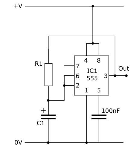 Keywords: 555 Mini Astable Diagram.svg Circuit Diagram of a 555 Astable with Minimal Components Own drawing made in Inkscape 0 43 2006-06-24 jjbeard PD 555 timer IC Astable circuits