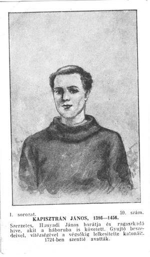 | Keywords: 59. Kapisztrán János.jpg hu A felvétel szkennelés 2012 június 7 én készült A képeslapsorozat korábbi tulajdonosa Bálint János Ócsa volt Az I sor 1 sz 1 sorozat 100 szám jelzetű képeslapok a 101 jelzetű füst albumot töltötték meg A képeslap sorozat képeit az 1920 as években adták ki Az ismeretlen szerző halála óta több mint 70 év telt el A képeslapok hátoldalán ex libris A sorozat képei 1 sz Gróf Széchenyi István 1791 1860 2 sz Deák Ferenc 1803 1876 2 sz 3 sz 4 sz 5 sz 6 sz 7 sz Felsőbükki Nagy Pál 1777 1857 8 sz Báró Eötvös József 1813 1871 9 sz Kossuth Lajos 1802 1894 10 sz Petőfi Sándor 1823 1849 11 sz Liszt Ferenc 1811 1886 12 sz Batthányy Lajos gróf 1806 1849 13 sz II Lajos 1506 1526 14 sz Munkácsy Mihály 1844 1900 15 sz Tisza Kálmán gróf 1830 1902 16 sz Mátyás király 1440 1490 17 sz Arany János 1817 1882 18 sz Tisza István gróf 1865 1918 19 sz Kölcsey Ferenc 1790 1838 20 sz Szinyei Merse Pál 1845 1920 21 sz Jókai Mór 1825 1904 22 sz Mikszáth Kálmán 1849 1910 23 sz Vörösmarty Mihály 1800 1855 24 sz Fadrusz János 1858 1903 25 sz Árpád a Honalapító 26 sz Szent István 975 -1038 27 sz Szent László 1040 - 1095 28 sz Könyves Kálmán 1070 1116 29 sz II Endre 1205 1235 30 sz IV Béla 1206 1270 31 sz Nagy Lajos 32 sz Hunyadi János 33 sz II Rákóczi Ferenc 34 sz Vak Bottyán 35 sz III Károly 36 sz II József 37 sz Madách Imre 38 sz Katona József 39 sz Csokonai Vitéz Mihály 40 sz Lotz Károly 41 sz Pöltenberg Ernő 42 sz Török Ignác 43 sz 44 sz 45 sz 46 sz 47 sz Aulich Lajos 48 sz Damjanich János 49 sz Dessewffy Arisztid 50 sz Lázár Vilmos 51 sz Kiss Ernő 52 sz Schweidel József 53 sz Vécsey Károly 54 sz Táncsics Mihály 55 sz Tompa Mihály 56 sz Rottenbiller Lipót 57 sz Szent Gellért 58 sz Szent Imre 59 sz Kapisztrán János 60 sz Kinizsi Pál 61 sz Tomori Pál 62 sz Zrinyi Miklós 63 sz Gábor Áron 64 sz Bem József 65 sz Bocskay István 66 sz Bethlen Gábor 67 sz József nádor 68 sz Kisfaludy Károly 69 sz Berzsenyi Dániel 70 sz Fáy András 71 sz Semmelweis Ignác 72 sz Egressy Gábor 73 sz Erkel Ferenc 74 sz Szilágyi Dezső 75 sz báró Bánffy Dezső 76 sz Ujházi Ede 77 sz Baross Gábor 78 sz id Wekerle Sándor 79 sz Justh Gyula 80 sz Prohászka Ottokár 81 sz Reményi Ede 82 sz Vámbéry Ármin 83 sz Rákosi Jenő 84 sz Eötvös Károly 85 sz Benczur Gyula 86 sz Blaha Lujza 87 sz Jászai Mari 88 sz Gárdonyi Géza 89 sz Ady Endre 90 sz Gyóni Géza 91 sz Báthori Zsigmond 92 sz Pázmány Péter 93 sz Kisfaludy Sándor 94 sz Goldmark Károly 95 sz Ferenc József 96 sz Erzsébet 97 sz Hermann Ottó 98 sz Lechner Ödön 99 sz Pósa Lajos 100 sz Móra Ferenc 101 jelzet füst album A felvétel és az egész sorozat képei megjelentek Creative Commons alatt a Metapolisz DVD sorozatban 2012-06-07 saját tulajdon author Custom license marker 2012 06 07 PD-old Uploaded with UploadWizard Giovanni da Capistrano Metapolisz |