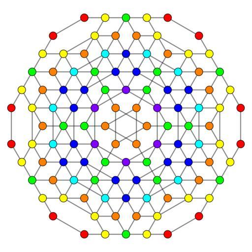 Keywords: 5-demicube t0123 D4.svg en 5-demicube family polytopes in D4 en Coxeter plane symmetry own 11/20/10 User Tomruen Set of colored Coxeter plane graphs red orange yellow green vertices