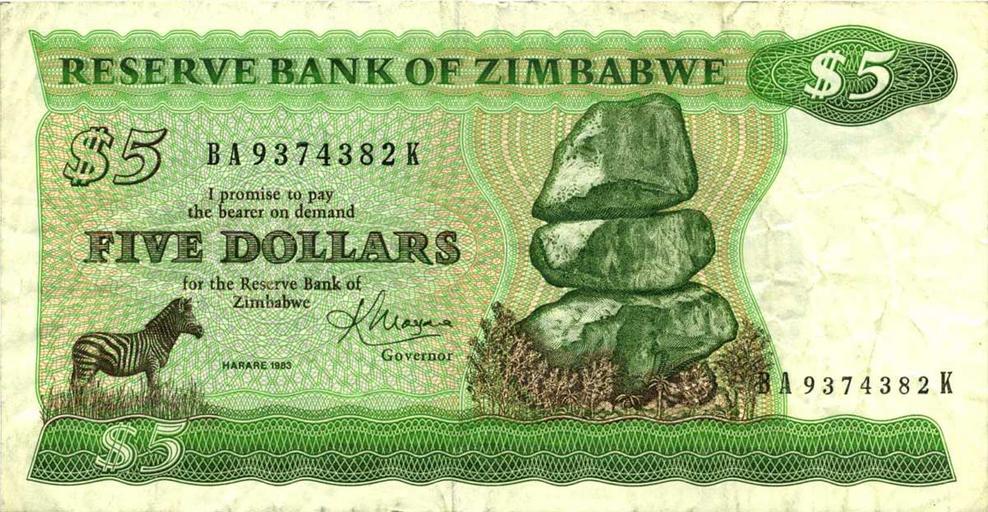 | Keywords: 5 dollars du Zimbabwe, 1983.jpg en 5 dollars du Zimbabwe 1983 2013-12-19 11 32 50 http //www cgb fr/5-dollars-zimbabwe-1983-p-02c b52_1716 a html cgb cc-by-sa-3 0 PD-ZW-currency Uploaded with UploadWizard Banknotes of Zimbabwe 1980-1994 Green banknotes of Zimbabwe Banknotes with a face value of 5 Zebras on banknotes |
