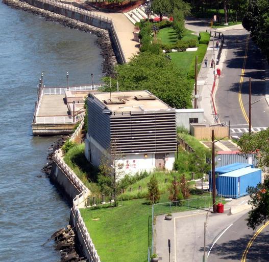 Keywords: 63 tunnel Rooselvelt Island jeh.JPG en Looking north and down from en Queensborough Bridge at venitlation structure for en 63rd Street Tunnel See also Image E63d St Ventilating Tower jeh JPG own Jim henderson 2008-08-17 40 45 27 N 73 57 20 6 W heading NEbN Roosevelt Island IND 63rd Street Line Ventilation towers in New York City