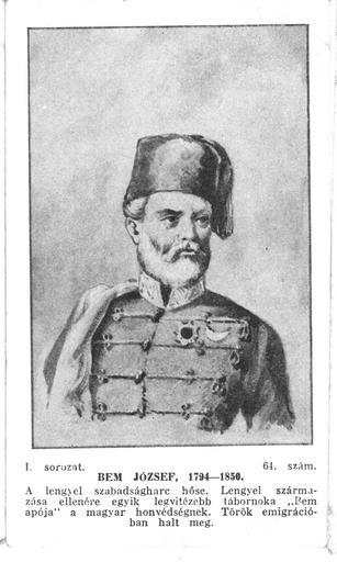 | Keywords: 64. Bem József.jpg hu A felvétel szkennelés 2012 június 7 én készült A képeslapsorozat korábbi tulajdonosa Bálint János Ócsa volt Az I sor 1 sz 1 sorozat 100 szám jelzetű képeslapok a 101 jelzetű füst albumot töltötték meg A képeslap sorozat képeit az 1920 as években adták ki Az ismeretlen szerző halála óta több mint 70 év telt el A képeslapok hátoldalán ex libris A sorozat képei 1 sz Gróf Széchenyi István 1791 1860 2 sz Deák Ferenc 1803 1876 2 sz 3 sz 4 sz 5 sz 6 sz 7 sz Felsőbükki Nagy Pál 1777 1857 8 sz Báró Eötvös József 1813 1871 9 sz Kossuth Lajos 1802 1894 10 sz Petőfi Sándor 1823 1849 11 sz Liszt Ferenc 1811 1886 12 sz Batthányy Lajos gróf 1806 1849 13 sz II Lajos 1506 1526 14 sz Munkácsy Mihály 1844 1900 15 sz Tisza Kálmán gróf 1830 1902 16 sz Mátyás király 1440 1490 17 sz Arany János 1817 1882 18 sz Tisza István gróf 1865 1918 19 sz Kölcsey Ferenc 1790 1838 20 sz Szinyei Merse Pál 1845 1920 21 sz Jókai Mór 1825 1904 22 sz Mikszáth Kálmán 1849 1910 23 sz Vörösmarty Mihály 1800 1855 24 sz Fadrusz János 1858 1903 25 sz Árpád a Honalapító 26 sz Szent István 975 -1038 27 sz Szent László 1040 - 1095 28 sz Könyves Kálmán 1070 1116 29 sz II Endre 1205 1235 30 sz IV Béla 1206 1270 31 sz Nagy Lajos 32 sz Hunyadi János 33 sz II Rákóczi Ferenc 34 sz Vak Bottyán 35 sz III Károly 36 sz II József 37 sz Madách Imre 38 sz Katona József 39 sz Csokonai Vitéz Mihály 40 sz Lotz Károly 41 sz Pöltenberg Ernő 42 sz Török Ignác 43 sz 44 sz 45 sz 46 sz 47 sz Aulich Lajos 48 sz Damjanich János 49 sz Dessewffy Arisztid 50 sz Lázár Vilmos 51 sz Kiss Ernő 52 sz Schweidel József 53 sz Vécsey Károly 54 sz Táncsics Mihály 55 sz Tompa Mihály 56 sz Rottenbiller Lipót 57 sz Szent Gellért 58 sz Szent Imre 59 sz Kapisztrán János 60 sz Kinizsi Pál 61 sz Tomori Pál 62 sz Zrinyi Miklós 63 sz Gábor Áron 64 sz Bem József 65 sz Bocskay István 66 sz Bethlen Gábor 67 sz József nádor 68 sz Kisfaludy Károly 69 sz Berzsenyi Dániel 70 sz Fáy András 71 sz Semmelweis Ignác 72 sz Egressy Gábor 73 sz Erkel Ferenc 74 sz Szilágyi Dezső 75 sz báró Bánffy Dezső 76 sz Ujházi Ede 77 sz Baross Gábor 78 sz id Wekerle Sándor 79 sz Justh Gyula 80 sz Prohászka Ottokár 81 sz Reményi Ede 82 sz Vámbéry Ármin 83 sz Rákosi Jenő 84 sz Eötvös Károly 85 sz Benczur Gyula 86 sz Blaha Lujza 87 sz Jászai Mari 88 sz Gárdonyi Géza 89 sz Ady Endre 90 sz Gyóni Géza 91 sz Báthori Zsigmond 92 sz Pázmány Péter 93 sz Kisfaludy Sándor 94 sz Goldmark Károly 95 sz Ferenc József 96 sz Erzsébet 97 sz Hermann Ottó 98 sz Lechner Ödön 99 sz Pósa Lajos 100 sz Móra Ferenc 101 jelzet füst album A felvétel és az egész sorozat képei megjelentek Creative Commons alatt a Metapolisz DVD sorozatban 2012-06-07 saját tulajdon author Custom license marker 2012 06 07 PD-old Metapolisz Uploaded with UploadWizard Józef Bem |