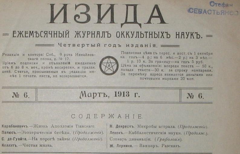 | Keywords: Страница журнала "Изида" №6, март 1913 г.jpg  «Изида» 6 1913-03 http //img-fotki yandex ru/get/4420/60916778 67/0_11af9c_568c117b_orig jpg Издательство жу нала «Изида» PD-RusEmpire Uploaded with UploadWizard Isis magazine Magazines of Russia 1913 |