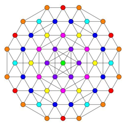 Keywords: 6-cube t14 B3.svg en 6-cube family graph in B3 en Coxeter plane own 10/11/10 self Set of colored Coxeter plane graphs red orange yellow green vertices
