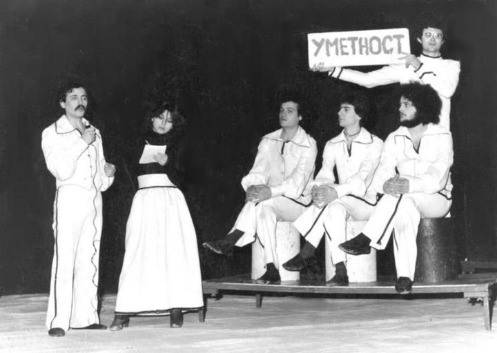 Keywords: 6. Od onaa strana na kostenite.jpg mk сцена од п етставата Од онаа ст ана на костените од Жан- ишел Риб во ежија на Бо е Ангеловски 1979 год Performance from Jean-Michel Ribes directed by Macedonian theatre director Bore Angelovski own Lazarevsky Bore Angelovski Jean-Michel Ribes People in 1969 Actors from the Republic of Macedonia