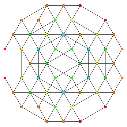 Keywords: 6-simplex t0135 A2.svg en en 6-simplex family graph in A2 en Coxeter plane own Tomruen Set of colored Coxeter plane graphs red orange yellow green vertices