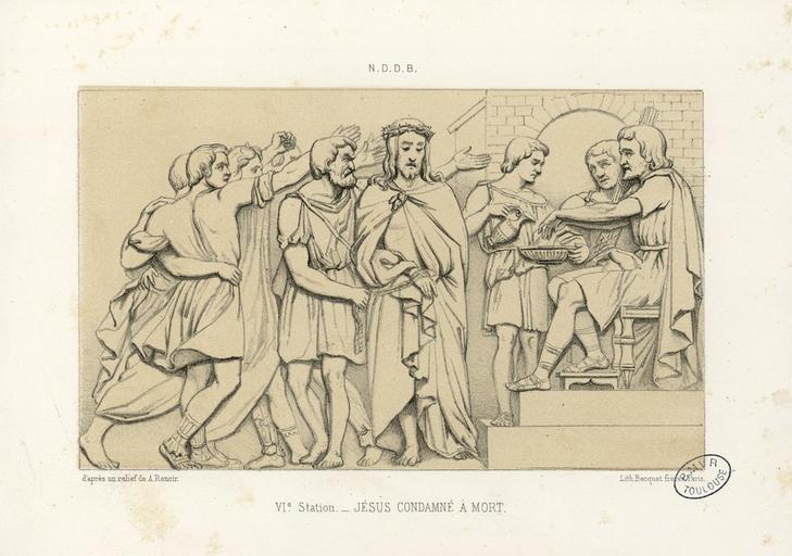 Keywords: 6e Station - Jésus condamné à mort - Fonds Ancely - B315556101 A GORSE 12 043.jpg Fait partie d'un album de planches dessinées et lithographiées sur fond bistre par Pierre Gorse imprimées chez Becquet frères à Paris annoncées par 1 page de titre lithographiée Pl 9 à 13 dessinées par Gorse d'après un relief d'Auguste Renoir Se vend au profit de la restauration de la Chapelle à Bétharram Ancely René 1876 - 1966 Possesseur fre public domain domaine public B315556101_A_GORSE_12_043 jpg image/jpeg 1 f de pl lith en camaïeu ; 14 5 cm oblong Renoir Alexandre Illustrateur Becquet 18 - 18 ; imprimeur Lithographe Vignancour E Editeur http //numerique bibliotheque toulouse fr/collect/general/index/assoc//ark /74899/B315556101_A_GORSE_12_043 dir/B315556101_A_GORSE_12_043 jpg Bibliothèque municipale de Toulouse A-GORSE 12-15 Creator Pierre Gorse http //catalogues toulouse fr/web2/tramp2 exe/do_keyword_search/log_in setting_key BMT1 servers 1home query p000823 vignette http //numerique bibliotheque toulouse fr/collect/general/index/assoc//ark /74899/B315556101_A_GORSE_12_043 dir/B315556101_A_GORSE_12_043_thumb jpeg century 19 6e Station - Jésus condamné à mort B315556101_A_GORSE_12_043 lithography - print Lestelle-Bétharram Pierre Gorse Historical images of Pyrénées-Atlantiques Notre-Dame Bétharram Engravings of Pilate washing his hands |