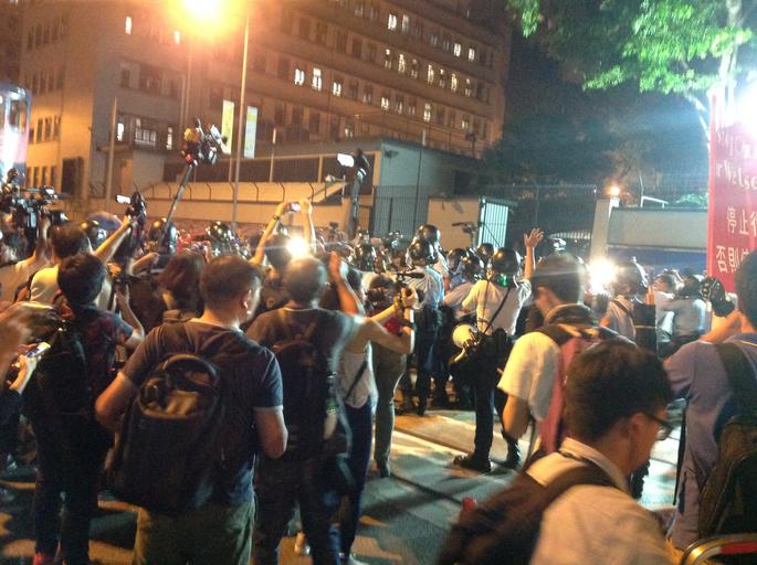 Keywords: 香港各界發起反人大釋法大遊行和集會 70.jpg zh-tw 中 人大常委 11 7日將就香港 年新政兩位議員宣誓風波,對基 法 宣誓 例宣布釋法內容之際,香港民間人權陣線星 天發起各界 反對釋法大遊行 和集 ,抗議人大 香港高等法院審理 宣誓風波司法覆核案 間,主動對基 法第104 釋法,破壞香港獨立的司法制度 香港民陣發起反釋法大遊行後,數以千計的示威 繼續遊行到西環的中聯辦抗議人大釋法 8點半左右,示威 手舉雨傘再次沖擊警方防線,警方則狂噴辣椒噴劑還擊 警方調派大批警員增援,並將配備防暴頭盔的警員派至 線與示威 對峙 警方不斷呼籲示威 持冷 ,不要 擊警方防線,要求示威 盡快離開 9點前, 中聯辦外與警察對峙的示威 突然撤離,輕 西 警署外的徳輔道西和西邊街道口,現場雙向交 中斷, 場自2014年雨傘運動後的佔領行動 醞 中,現場至少 幾千之 十多分鐘後,警方開始廣 播,要求佔路人士離開 示威 9點過後佔據了中聯辦外 段德輔道,並 中聯辦後 外與警方防線展開推撞,警方用辣椒噴 還擊將示威 防線推後 示威 不斷呼喊反對釋法 警方 中聯辦西邊的 光街路口佈署第二道防線,並 警員從路旁的西 警署裡向警察傳遞防暴盾牌 步部署防線 目前還不清楚警方何時清場 2016-11-06 21 12 17 http //www voachinese com/a/hk-protest-20161106/3583208 html 海彥 other versions Custom license marker 2016 11 06 PD-USGov-VOA Occupy Sai Wan |