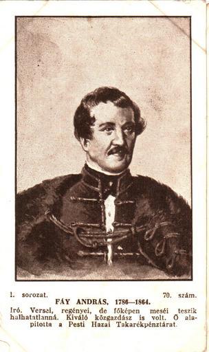 | Keywords: 70. Fáy András.jpg hu A felvétel szkennelés 2012 június 7 én készült A képeslapsorozat korábbi tulajdonosa Bálint János Ócsa volt Az I sor 1 sz 1 sorozat 100 szám jelzetű képeslapok a 101 jelzetű füst albumot töltötték meg A képeslap sorozat képeit az 1920 as években adták ki Az ismeretlen szerző halála óta több mint 70 év telt el A képeslapok hátoldalán ex libris A sorozat képei 1 sz Gróf Széchenyi István 1791 1860 2 sz Deák Ferenc 1803 1876 2 sz 3 sz 4 sz 5 sz 6 sz 7 sz Felsőbükki Nagy Pál 1777 1857 8 sz Báró Eötvös József 1813 1871 9 sz Kossuth Lajos 1802 1894 10 sz Petőfi Sándor 1823 1849 11 sz Liszt Ferenc 1811 1886 12 sz Batthányy Lajos gróf 1806 1849 13 sz II Lajos 1506 1526 14 sz Munkácsy Mihály 1844 1900 15 sz Tisza Kálmán gróf 1830 1902 16 sz Mátyás király 1440 1490 17 sz Arany János 1817 1882 18 sz Tisza István gróf 1865 1918 19 sz Kölcsey Ferenc 1790 1838 20 sz Szinyei Merse Pál 1845 1920 21 sz Jókai Mór 1825 1904 22 sz Mikszáth Kálmán 1849 1910 23 sz Vörösmarty Mihály 1800 1855 24 sz Fadrusz János 1858 1903 25 sz Árpád a Honalapító 26 sz Szent István 975 -1038 27 sz Szent László 1040 - 1095 28 sz Könyves Kálmán 1070 1116 29 sz II Endre 1205 1235 30 sz IV Béla 1206 1270 31 sz Nagy Lajos 32 sz Hunyadi János 33 sz II Rákóczi Ferenc 34 sz Vak Bottyán 35 sz III Károly 36 sz II József 37 sz Madách Imre 38 sz Katona József 39 sz Csokonai Vitéz Mihály 40 sz Lotz Károly 41 sz Pöltenberg Ernő 42 sz Török Ignác 43 sz 44 sz 45 sz 46 sz 47 sz Aulich Lajos 48 sz Damjanich János 49 sz Dessewffy Arisztid 50 sz Lázár Vilmos 51 sz Kiss Ernő 52 sz Schweidel József 53 sz Vécsey Károly 54 sz Táncsics Mihály 55 sz Tompa Mihály 56 sz Rottenbiller Lipót 57 sz Szent Gellért 58 sz Szent Imre 59 sz Kapisztrán János 60 sz Kinizsi Pál 61 sz Tomori Pál 62 sz Zrinyi Miklós 63 sz Gábor Áron 64 sz Bem József 65 sz Bocskay István 66 sz Bethlen Gábor 67 sz József nádor 68 sz Kisfaludy Károly 69 sz Berzsenyi Dániel 70 sz Fáy András 71 sz Semmelweis Ignác 72 sz Egressy Gábor 73 sz Erkel Ferenc 74 sz Szilágyi Dezső 75 sz báró Bánffy Dezső 76 sz Ujházi Ede 77 sz Baross Gábor 78 sz id Wekerle Sándor 79 sz Justh Gyula 80 sz Prohászka Ottokár 81 sz Reményi Ede 82 sz Vámbéry Ármin 83 sz Rákosi Jenő 84 sz Eötvös Károly 85 sz Benczur Gyula 86 sz Blaha Lujza 87 sz Jászai Mari 88 sz Gárdonyi Géza 89 sz Ady Endre 90 sz Gyóni Géza 91 sz Báthori Zsigmond 92 sz Pázmány Péter 93 sz Kisfaludy Sándor 94 sz Goldmark Károly 95 sz Ferenc József 96 sz Erzsébet 97 sz Hermann Ottó 98 sz Lechner Ödön 99 sz Pósa Lajos 100 sz Móra Ferenc 101 jelzet füst album A felvétel és az egész sorozat képei megjelentek Creative Commons alatt a Metapolisz DVD sorozatban 2012-06-07 saját tulajdon author Custom license marker 2012 06 07 PD-old Metapolisz Uploaded with UploadWizard András Fáy |