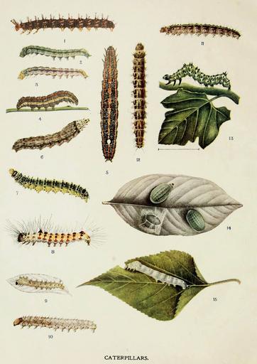 | Keywords: 70-Indian-Insect-Life - Harold Maxwell-Lefroy - Caterpillars.jpg cs Vyobrazení z knihy Indian Insect Life a Manual of the Insects of the Plains od Harolda Maxwell-Lefroye en Plate XXVIII from book Indian Insect Life a Manual of the Insects of the Plains by Harold Maxwell-Lefroy <br /> 1 Junonia orithya Nymphalidae <br /> 2 3 Chloridea obsoleta Noctuidae Helicoverpa armigera Hübner 1808 <br /> 4 5 Catephia inquieta Noctuidae <br /> 6 Sphingid <br /> 7 Glyphodes psittacalis Piralidae <br /> 8 Porthesia xanthorhoea Lymantriidae Porthesia xanthorrhoea Kollar <br /> 9 Bombyx mori 2nd instar Bombycidae <br /> 10 Setomorpha teneoides Tineidae <br /> 11 12 Cryptophlebia carpophaga Tortricidae <br /> 13 Plusia agramma Noctuidae Anadevidia peponis Fabricius 1775 <br /> 14 Belippa laleana Limacodidae <br /> 15 Bombyx mori full grown Bombycidae 1909 http //biodiversitylibrary org/item/80025 Harold Maxwell-Lefroy cc-zero Indian Insect Life a Manual of the Insects of the Plains Tropical India Uploaded with UploadWizard Caterpillars Caterpillars in art |