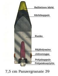 Keywords: 7,5 cm Panzergranate 39.jpg Cutaway drawing of 7 5 cm Pzgr 39 Schnittzeichnung einer 7 5 cm Pzgr 39 Panzergranate Finnish Army instructional table 2007-10-02 lauri vuorinen German 7 5-cm-PzGr 39 svg World War II anti-tank ammunition Cutaway diagrams Artillery ammunition diagrams |