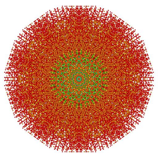 Keywords: 7-cube t0123456 B5.svg en 7-cube family graph in B5 en Coxeter plane Vertices only no edges due to file sizes too large own 10/21/10 self Set of colored Coxeter plane graphs red orange yellow green vertices