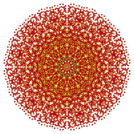 Keywords: 7-cube t0126 B6.svg en 7-cube family graph in B6 en Coxeter plane Vertices only no edges due to file sizes too large own 10/21/10 self Set of colored Coxeter plane graphs red orange yellow green vertices