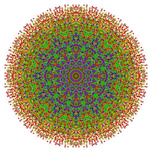 Keywords: 7-cube t23456 B6.svg en 7-cube family graph in B6 en Coxeter plane Vertices only no edges due to file sizes too large own 10/21/10 self 7-polytopes