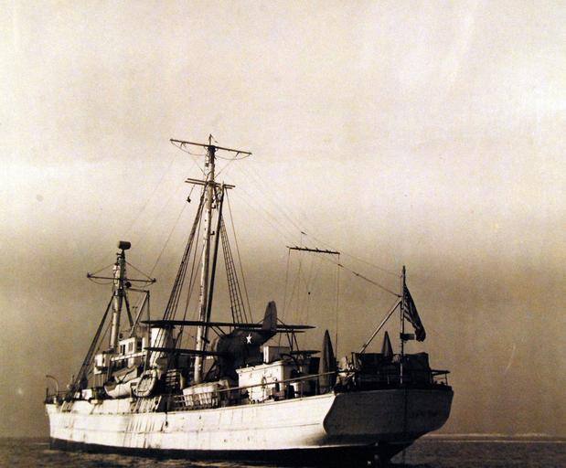 | Keywords: boat vehicle outdoor 80-G-225198: USS Bear (AG 29), port quarters view, at anchor. Photograph released May 1, 1944. Built in Scotland in 1874, she had a long history, serving in the Greely Expedition in 1884, serving in Rear Admiral Richard E. Byrd’s mission to Antarctica. In 1963, whilst being towed to Philadelphia to become a floating restaurant, she sank in the North Atlantic ocean east of Cape Sable Island, Nova Scotia.(2015/10/13). 80-G-225198: USS Bear (AG 29), port quarters view, at anchor. Photograph released May 1, 1944. Built in Scotland in 1874, she had a long history, serving in the Greely Expedition in 1884, serving in Rear Admiral Richard E. Byrd’s mission to Antarctica. In 1963, whilst being towed to Philadelphia to become a floating restaurant, she sank in the North Atlantic ocean east of Cape Sable Island, Nova Scotia.(2015/10/13). |