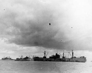 Keywords: blackandwhite monochrome outdoor sea sky black and white 80-G-285127: Normandy Invasion, June 1944. A “Gooseberry,” a line of sunken ships forming part of a U.S. Mulberry, a man-made harbor off Omaha Beach, France, protecting landing craft from storms in English Channel. Photograph released November 7, 1944. U.S. Navy photograph, now in the collections of the National Archives. (2016/03/15). 80-G-285127: Normandy Invasion, June 1944. A “Gooseberry,” a line of sunken ships forming part of a U.S. Mulberry, a man-made harbor off Omaha Beach, France, protecting landing craft from storms in English Channel. Photograph released November 7, 1944. U.S. Navy photograph, now in the collections of the National Archives. (2016/03/15). |