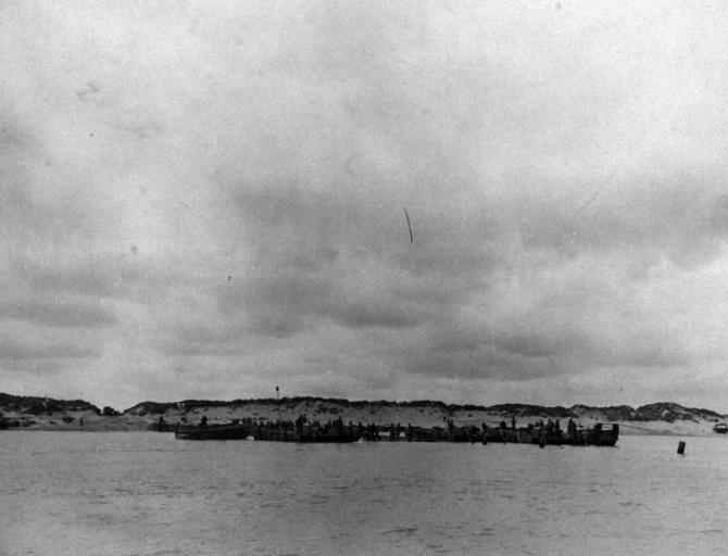 Keywords: blackandwhite monochrome outdoor sky black and white 80-G-285134: Normandy Invasion, June 1944. The pontoon causeway at “Utah” beach, forming part of the U.S. Mulberry the man-made harbor off coast of France, built to protect landing craft from storms in English Channel. Photograph released November 7, 1944. U.S. Navy photograph, now in the collections of the National Archives. (2016/03/15). 80-G-285134: Normandy Invasion, June 1944. The pontoon causeway at “Utah” beach, forming part of the U.S. Mulberry the man-made harbor off coast of France, built to protect landing craft from storms in English Channel. Photograph released November 7, 1944. U.S. Navy photograph, now in the collections of the National Archives. (2016/03/15). |