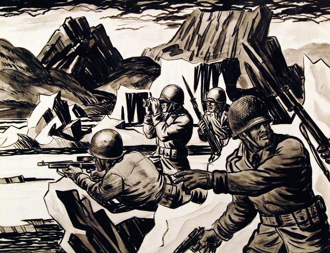 Keywords: motorcycle bike vehicle outdoor surreal photo border 80-G-43829: Mixed landing forces of U.S. Coast Guard and Army Commandos, members of the U.S. Navy’s Greenland’s Patrol Expeditionary Force, search the rugged terrain of Greenland for remnants of a German Naval and Military force which were operating a radio base there. One prisoner was captured, others had evacuated. Shown: The men advance toward shore past field of pack ice and bergs to investigate area reported by Coast Guard Cutter’s reconnaissance plane as suspicious. Approach to shore other than across floes of store ice (Polar Pack Ice) was impossible. Artwork by Norman Thomas. Photograph released November 20, 1943. (2015/10/13). 80-G-43829: Mixed landing forces of U.S. Coast Guard and Army Commandos, members of the U.S. Navy’s Greenland’s Patrol Expeditionary Force, search the rugged terrain of Greenland for remnants of a German Naval and Military force which were operating a radio base there. One prisoner was captured, others had evacuated. Shown: The men advance toward shore past field of pack ice and bergs to investigate area reported by Coast Guard Cutter’s reconnaissance plane as suspicious. Approach to shore other than across floes of store ice (Polar Pack Ice) was impossible. Artwork by Norman Thomas. Photograph released November 20, 1943. (2015/10/13).