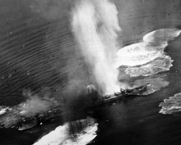 Keywords: blackandwhite monochrome outdoor black and white 80-G-490148: Air Raids on Japan, 1945. Japanese cruiser Tone under air attack near Kure, 24 July 1945. Photograph by USS Shangri-La (CV 38) aircraft. Note the camouflage nets hanging over its sides. U.S. Navy Photograph, now in the collections of the National Archives. (2015/12/08). 80-G-490148: Air Raids on Japan, 1945. Japanese cruiser Tone under air attack near Kure, 24 July 1945. Photograph by USS Shangri-La (CV 38) aircraft. Note the camouflage nets hanging over its sides. U.S. Navy Photograph, now in the collections of the National Archives. (2015/12/08). |
