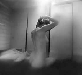 Keywords: 8799-104-016.jpg en Nude in bed own Dharmala Black and white photographs of nude sitting women