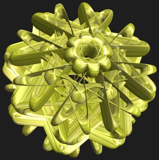 | Keywords: mathematica 3d cg parametricplot3d texture torus 輪環 りんかん ドーナツ どーなつ 八芒星 はちぼうせい 八光星 はちこうせい 八稜星 はちりょうせい code program algorithm コード プログラム アルゴリズム geometric sculpture geometricsculpture shape geometry sculpture mapping テクスチャ マッピング 模様 もよう abstract 抽象 ちゅうしょう アブストラクト design pattern デザイン パターン graphic グラフィック グラフィクス structure 意匠 構造 symmetry 対称性 たいしょうせい シンメトリー 対称 たいしょう algorithm コード flower plant bouquet black background organic pattern a = 5; (* center hole size of a torus *) b = 8; (* octa-torus *) c = -8; (* distance from the center of rotation *) d = 8; (* number of torus *) h = 5; (* height of a torus *) SetOptions[ParametricPlot3D, PlotRange -> Full, Mesh -> None, Boxed -> False, Axes -> False, PlotPoints -> 300, ImageSize -> 2600, Background -> RGBColor[{30, 30, 30}/255], PlotStyle -> Directive[Specularity[White, 50], Texture[Import["D:/tmp/71.jpg"]]], TextureCoordinateFunction -> ({#4 + #5, #5/Pi} &), Lighting -> "Neutral"]; f[v_] := Sin[2 Sin[Sin[Sin[v]]]]; x = (a - Cos[t] - f[b s]) Cos[s + Pi/(2 b)]; y = (a - Cos[t] - f[b s]) Sin[s + Pi/(2 b)]; z = (a - Sin[t] - h f[b s]) + c; rm = Table[{x, y, z}.RotationMatrix[2 i Pi/d, {1, 0, 0}], {i, d}]; ParametricPlot3D[rm, {t, 0, 2 Pi}, {s, 0, 2 Pi}] (*--- The Texture *) a = 5; (* center hole size of a torus *) b = 8; (* octa-torus *) c = -8; (* distance from the center of rotation *) d = 8; (* number of torus *) h = 5; (* height of a torus *) SetOptions[ParametricPlot3D, PlotRange -> Full, Mesh -> None, Boxed -> False, Axes -> False, PlotPoints -> 300, ImageSize -> 2600, Background -> RGBColor[{30, 30, 30}/255], PlotStyle -> Directive[Specularity[White, 50], Texture[Import["D:/tmp/71.jpg"]]], TextureCoordinateFunction -> ({#4 + #5, #5/Pi} &), Lighting -> "Neutral"]; f[v_] := Sin[2 Sin[Sin[Sin[v]]]]; x = (a - Cos[t] - f[b s]) Cos[s + Pi/(2 b)]; y = (a - Cos[t] - f[b s]) Sin[s + Pi/(2 b)]; z = (a - Sin[t] - h f[b s]) + c; rm = Table[{x, y, z}.RotationMatrix[2 i Pi/d, {1, 0, 0}], {i, d}]; ParametricPlot3D[rm, {t, 0, 2 Pi}, {s, 0, 2 Pi}] (*--- The Texture *) |