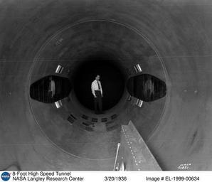 Keywords: 8-Foot High Speed Tunnel DVIDS739913.jpg en Control panel below the test section of the 8-Foot High Speed Tunnel 8-Foot HST Authorized July 17 1933 construction of the 8-Foot HST was paid for with funds from the Federal Public Works Administration Manly Hood and Russell Robinson designed the unusual facility which could produce a 500 mph wind stream across an 8-Foot test section The concrete shell was not part of the original design Like most projects funded through New Deal programs the PWA restricted the amount of money which could be spent on materials The majority of funds were supposed to be expended on labor Though originally Hood and Robinson had planned a welded steel pressure vessel around the test section PWA officials proposed the idea of concrete This picture shows the test section inside the igloo-like structure with walls of 1-foot thick reinforced concrete The thick walls were needed because of the Bernoulli effect which meant that the text chamber had to withstand powerful inwardly directed pressure Operating personnel located inside the igloo were subjected to pressures equivalent to 10 000-foot altitude and had to wear oxygen masks and enter through airlocks A heat exchanger removed the large quantities of heat generated by the big fan NASA Identifier L11851 2009-12-10 Glenn Research Center https //www dvidshub net/image/739913 739913 2012-10-18 01 17 WASHINGTON DC US PD-USGov Oxygen masks Images from DoD uploaded by Fæ |